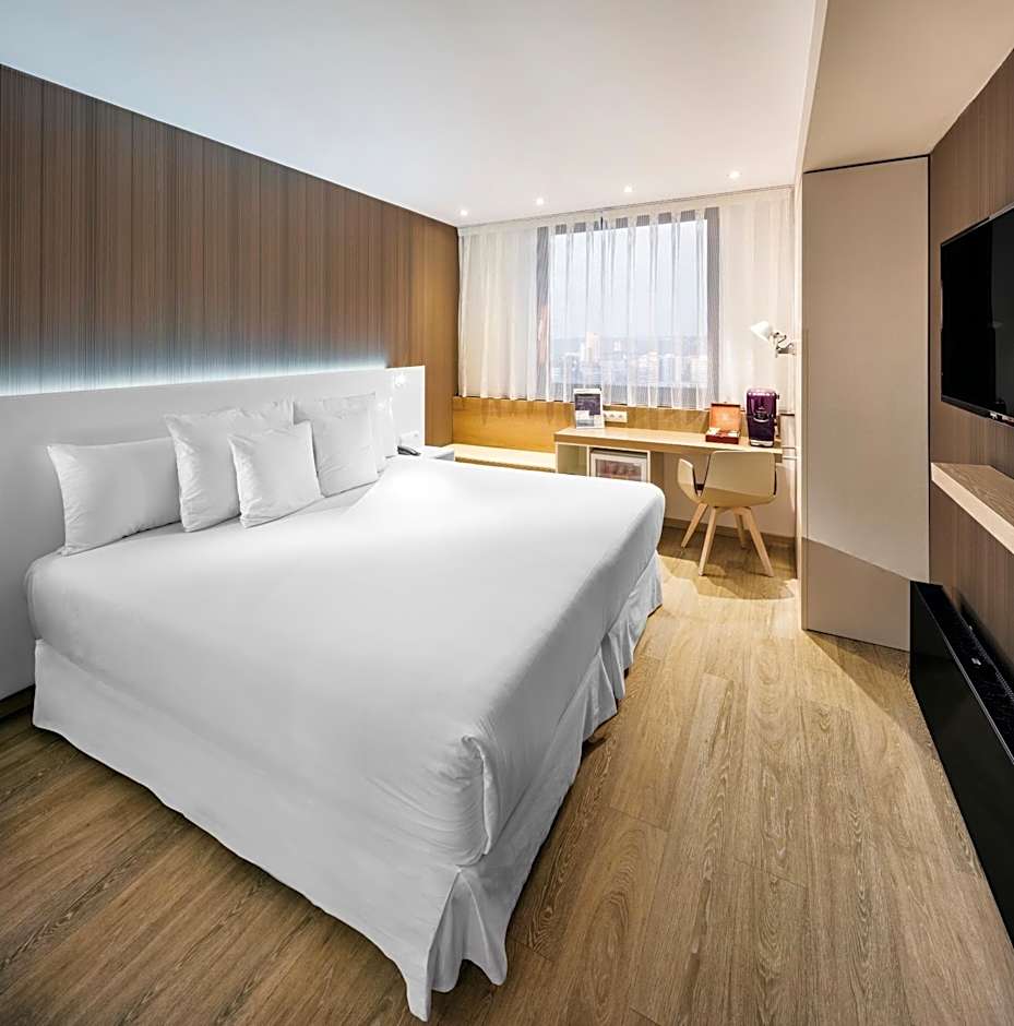 Located on the top floors, this modern junior suite offers panoramic city views, extra-large beds and a living area.
